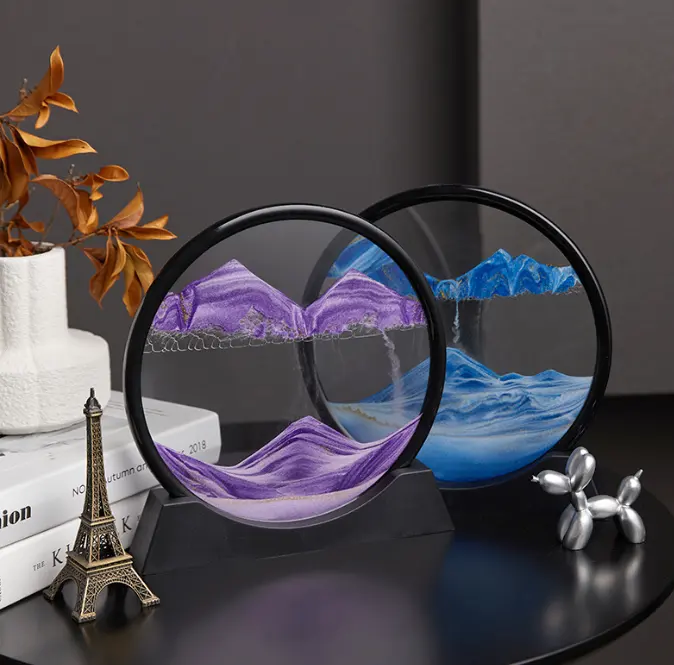 Relaxing Home Office Work Decor Deep Sea Sand Art Picture Sandscape Flowing Sand Frame Moving Sand Art Picture 3D Dynamic Round Glass.